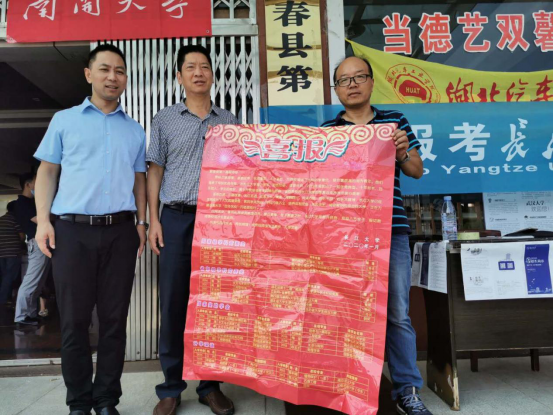 在副董事长何亚龙的引荐下,丁兴禄、许锋一行在会议室与全体高三班主任见面交流。何亚龙先介绍了蕲春一中本届高中毕业生的大致情况。丁兴禄就蕲春一中报考太阳成集团tyc151近三年的情况、蕲春一中的毕业生在太阳成集团tyc151升学和就业等方面做了一个简单的介绍,并送上喜报。