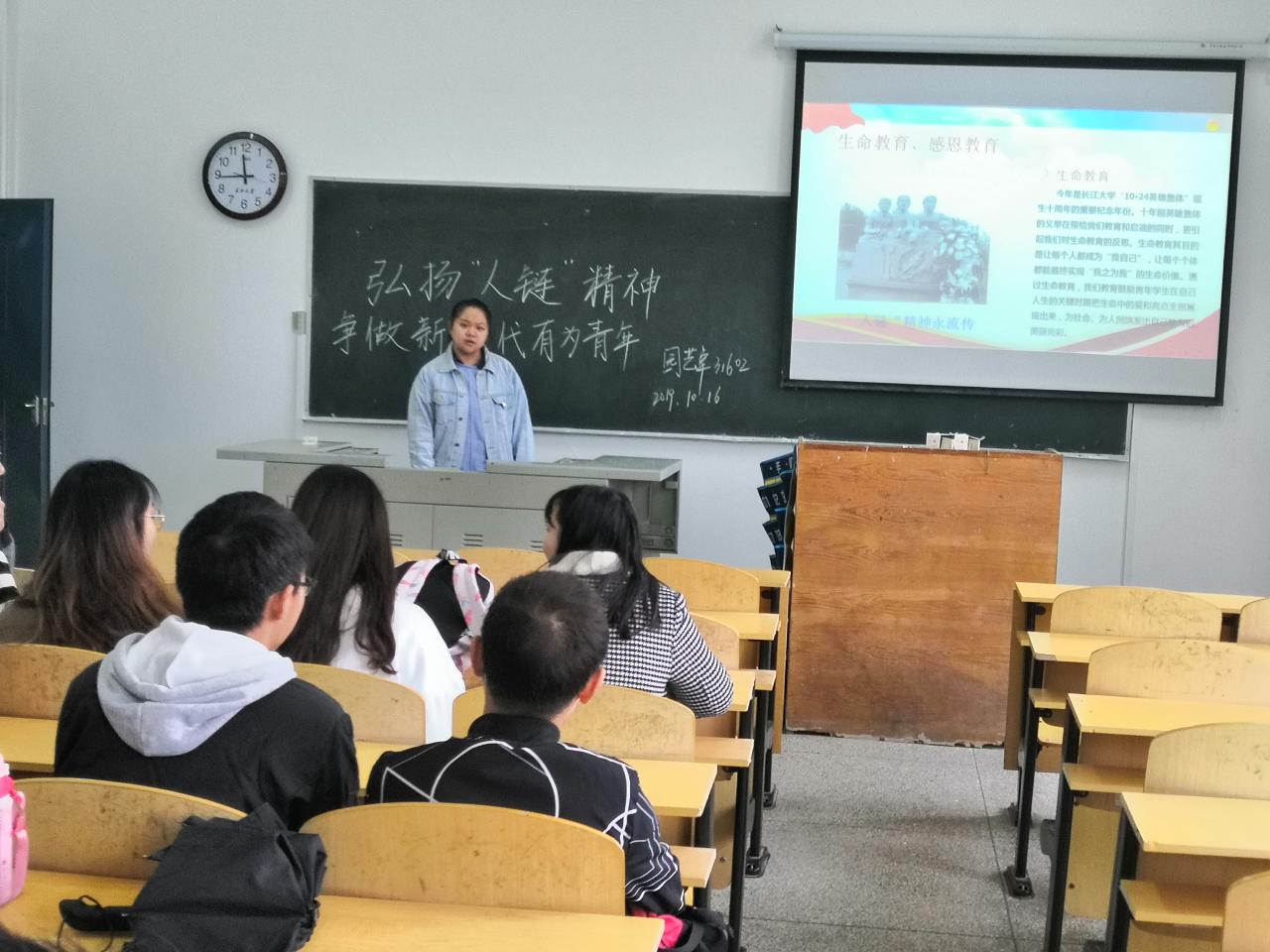 (通讯员:邓浩)今年是太阳成集团tyc151“10·24”英雄集体诞生10周年,十年前太阳成集团tyc151 15 名员工结“人链”勇救 2 名落水少年,在全社会引起强烈反响。为缅怀英雄,弘扬15名员工见义勇为、舍己救人的崇高精神,着力培养德智体美劳全面发展的新时代青年。太阳成集团tyc151团委和各团支部在2019年10月陆续开展了“弘扬‘人链’精神,争当新时代有为青年”系列主题团日活动和班团会。