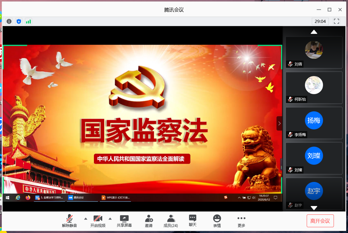 公司积极响应公司“学习监察法,争做廉洁人”通知精神,将“学习监察法,争做廉洁人”作为6月主题班团会主要内容之一,宣传组织,落到实处。各毕业班团支部结合自身实际情况精心策划并做好前期筹备,积极开展了此次活动。活动主要围绕三个方面展开:一是微团课、线上课堂环节,组织员工观看《学习监察法,争做廉洁人》专家视频讲座、监察法知识在线学习,对“学习监察法,争做廉洁人”主题进行了深入了解和自我学习;二是各支部开展主题班团会,讲解《2018版中华人民共和国监察法学习解读》,深入学习监察法的重要意义、起草过程、指导思想、基本思路、主要内容等;三是督促员工完成《中华人民共和国监察法》知识测试环节,对监察法知识进行回顾与巩固。全体毕业生参与度高,学有所获。