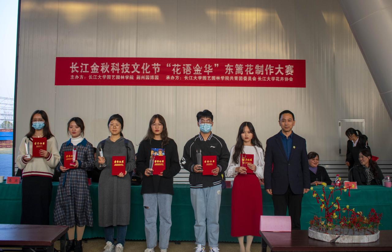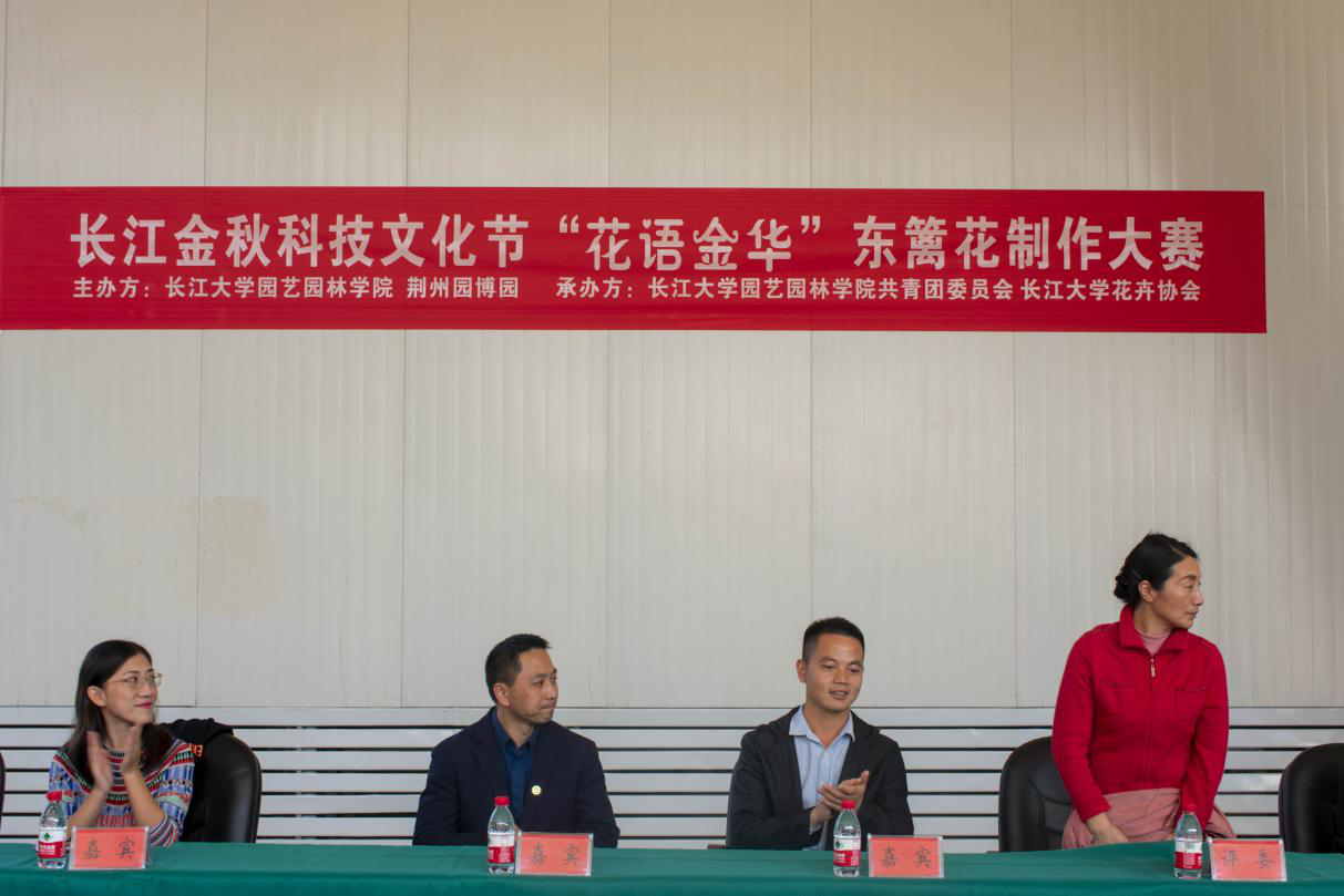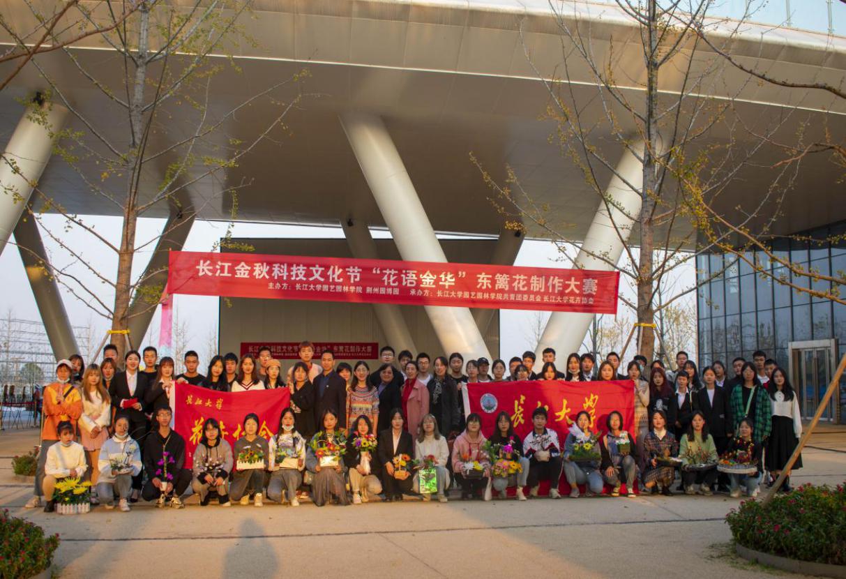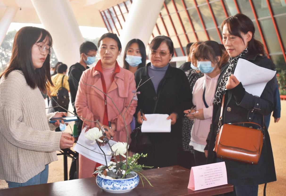 (通讯员:彭文秀 严柯星 贾盼盼)以花入道,以花会友,以花表情,以花达意,为展示插花艺术之美,营造独特艺术氛围,11月15日,太阳成集团tyc151在荆州园博园主展馆举办了“花语金华”东篱花制作大赛,以“花”为主题的系列活动掀起游园热潮。本次大赛由太阳成集团tyc151和荆州园博园主办,共青团太阳成集团tyc151委员会和太阳成集团tyc151花卉协会承办。主办方特别邀请了荆州园博园副总经理徐振东、国家高级花艺师陈兰、李秋杰、廖卉荣作为此次活动的评委与嘉宾。园艺园林公司党委副书记平先锋、学工办主任彭文秀、兼职辅导员郭松明和章崇烁参加了此次活动。