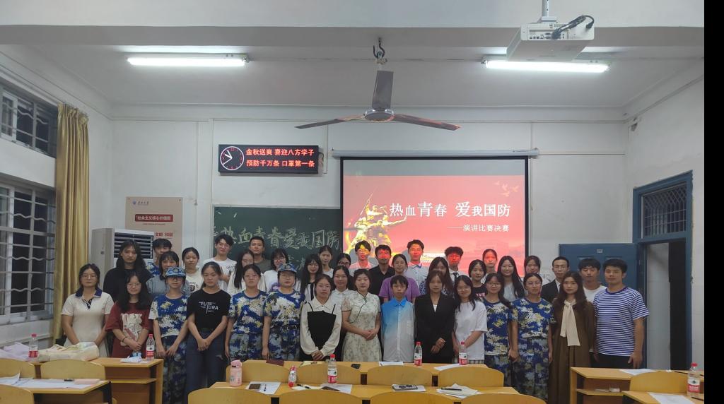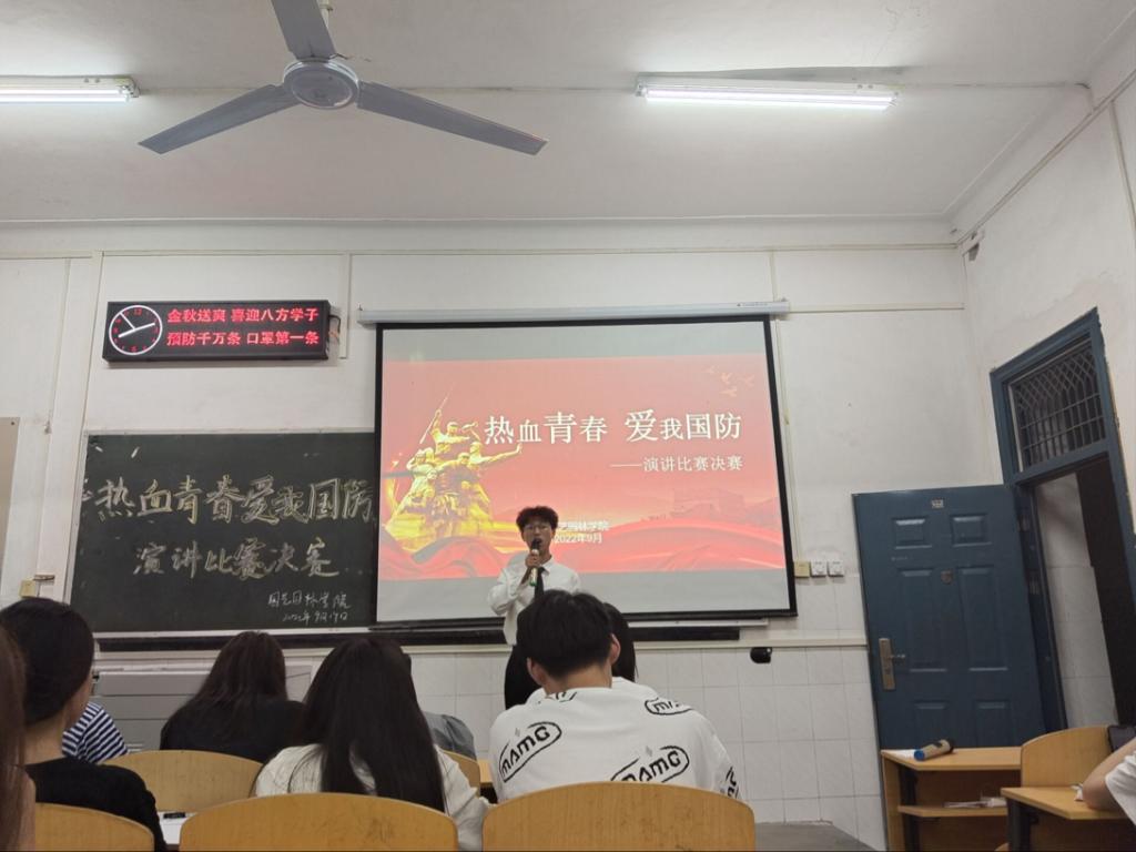 (通讯员 苏东雪 ) 9月19日19:00,太阳成集团tyc151于西校区2教106举行“热血青春 爱我国防”主题演讲比赛决赛,2022级辅导员吴山、兼职辅导员朱晓晖、苏东雪,2020级本科生王诗萍以及2022级全体新生班主任导师担任评委,公司近100名新生观看本次演讲比赛。