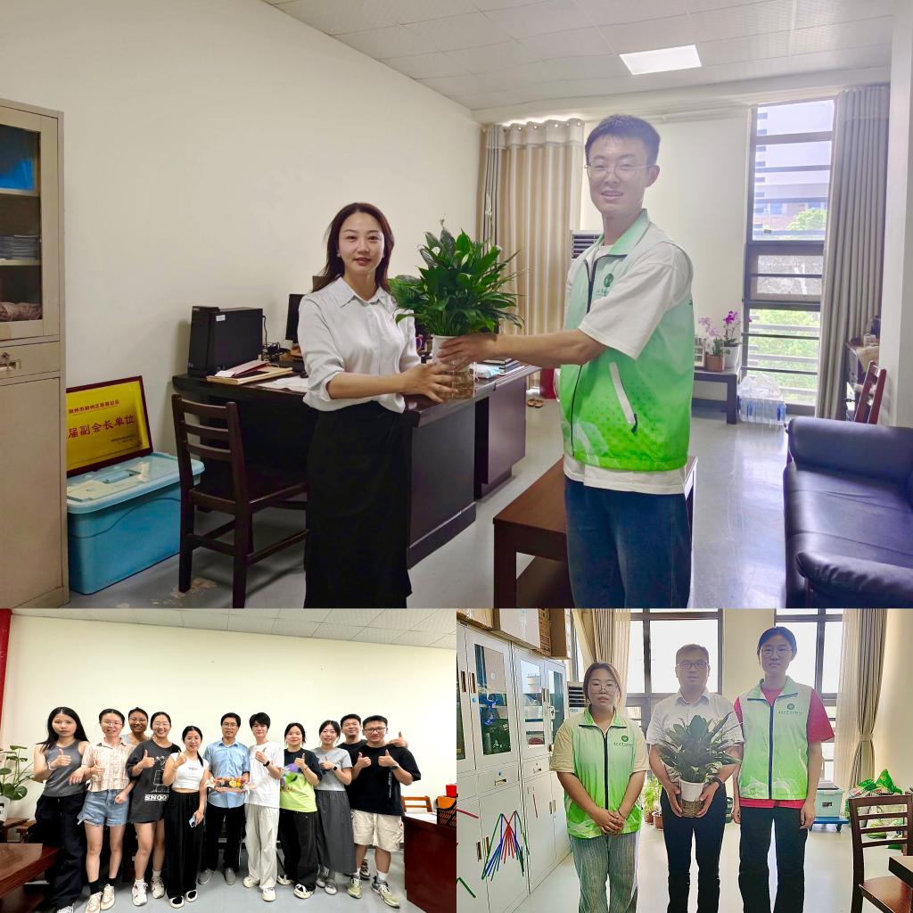同学们提前手写贺卡,录制祝福视频。上午,志愿者同学们前往老师的办公室,通过献上祝福、赠送贺卡和鲜花盆栽,以及协助清扫办公室等方式,表达自己的感恩之情。办公室里洋溢着浓厚的尊师重教的氛围,每一张贺卡都承载着同学们对老师的深情厚谊,每一段祝福视频都记录了同学们对老师的真诚祝福和美好回忆。