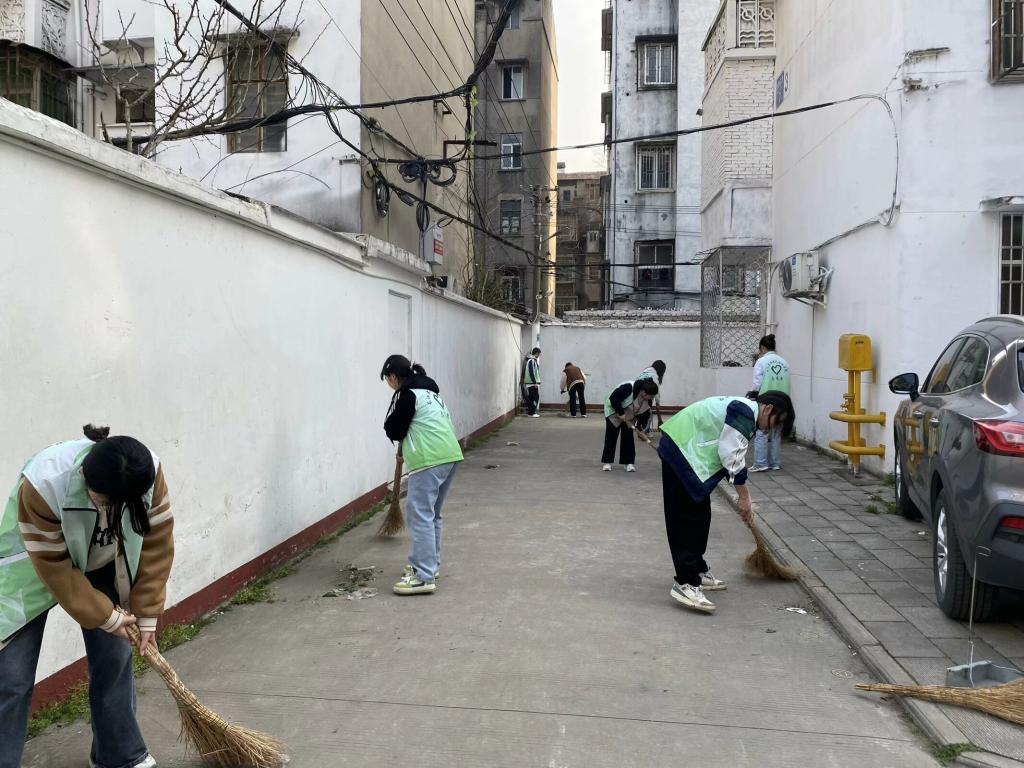 同学们踏入东门社区,迅速行动起来,他们身穿统一的志愿者服装,手持扫帚、垃圾袋等清洁工具,就像一群身着绿色战袍的勇士,准备为社区“洗脸”。