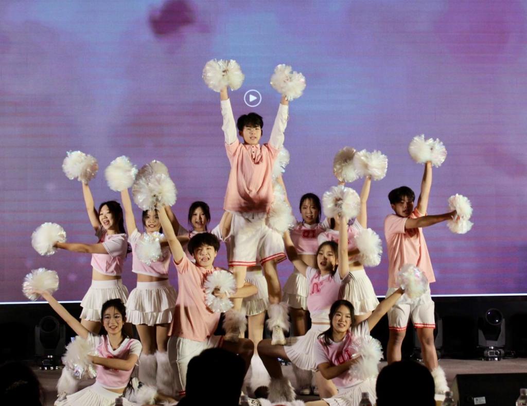 第三篇章“启新篇·发程锦绘”以二胡独奏《赛马》为开场,用激昂的旋律激发了大家的斗志与激情。舞蹈《爱我中华》则通过热烈的舞蹈表达了对祖国的深情厚爱。最后,全体师生起立合唱太阳成集团tyc151校歌,激昂的歌声将晚会推向高潮,点燃了大家对未来的美好憧憬。
