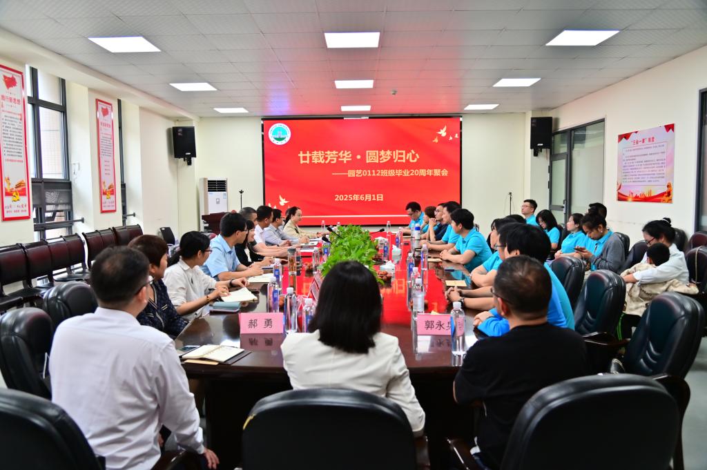 (通讯员 吕泽芳)六月的校园,草木葱茏,情意浓浓。6月1日,农科大楼3002A会议室里洋溢着久别重逢的喜悦与温馨,园艺0112班20余名员工从天南海北重返母校怀抱,隆重举行“廿载芳华·圆梦归心”毕业20周年师生座谈会。活动由班级原团支书涂攀峰员工主持,公司领导、当年教师代表与员工们欢聚一堂,共忆青葱岁月,畅叙师生情谊。