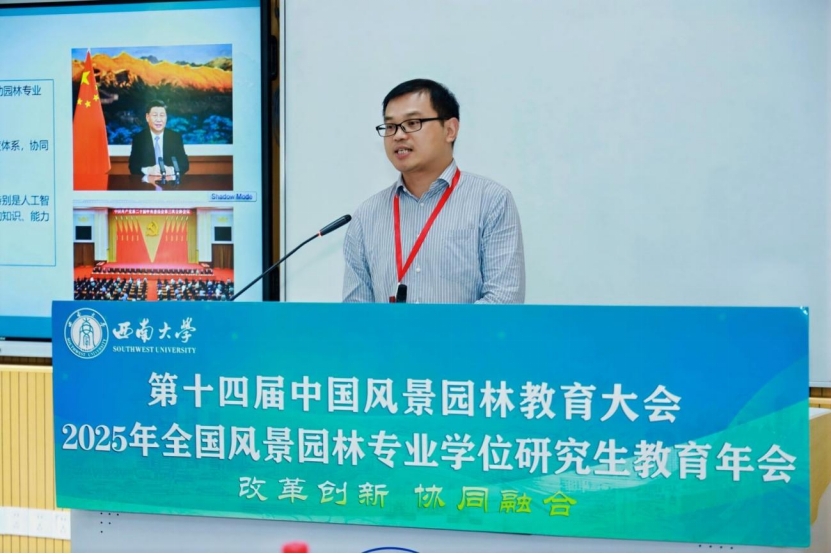 (通讯员 何文静)9月26日—28日,由中国风景园林学会教育工作委员会、全国风景园林专业学位研究生教育指导委员会、中国学位与研究生教育学会风景园林专业学位工作委员会联合主办的第十四届中国风景园林教育大会暨2025年全国风景园林专业学位研究生教育年会在重庆西南大学(北碚校区)举行。本次大会以“改革创新,协同融合”为主题,精准把握了新时代风景园林教育事业发展的核心要求,共同探讨未来风景园林教育事业的创新发展之路。公司肖国增副经理、郭晓华副教授、王万喜副教授等5名师生参加了会议。肖国增、郭晓华分别以《基于“三观五美”理念的园林专业人才培养模式研究与实践》《美好城乡·共同缔造——“五共”路径下的<园林综合设计>实践》为题作分论坛报告。
