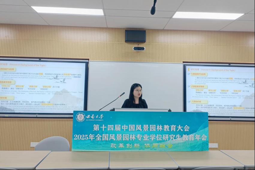 公司2024级风景园林专业硕士研究生何文静在研究生分论坛上就鄂西南清代八景诗作了口头报告,何文静以鄂西南为例,从景观特征视角系统阐释清代“八景诗”的景观与文化内涵,得到了现场点评嘉宾与青年学者的赞同。