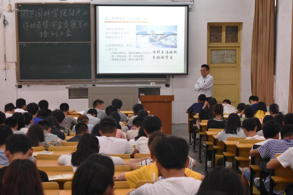 随后,孙老师就安全员、寝室长培训问题也做出了详细的指导。他围绕“两大类重点安全问题的常识与技能学习”、“三大公司生命安全问题”、“老员工常见安全问题的防范与提醒”、“员工干部如何做好安全教育第一道屏障工作”等几个问题做了详细的解说。特别指出老员工要尤其注意防溺水,防火灾,防诈骗,防传销等几大高频安全问题,加强安全防范意识,尊重生命、爱惜生命。