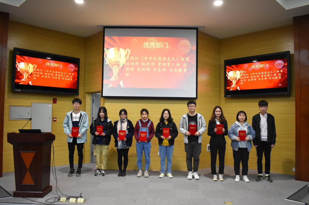 在同学们的热烈掌声中,大会隆重开场。大会第一项,雷老师宣读了第二十二届团委员工会名单,并给予他们真诚的鼓励和期望。大会第二项,主持人宣读了第二十一届团委员工会优秀干事、优秀部副长、优秀部长及优秀部门名单,并分别邀请了孙老师、雷老师、文书记和宋雪阳副主席为其颁发荣誉证书。大会第三项,第二十二届团委员工会主席兼第一副书记吴茜茜发言,她为我们新一届员工会提出了三点要求,一是戒骄戒躁、二是妥善处理工作与学习的关系、三是脚踏实地地做事;员工代表卜宪辰同学也发表了自己对员工会深刻的认识与感悟。大会最后一项,文书记发言总结并勉励各位同学:团委员工会成员的首要职责就是认真做事;其次,明智的大脑、独立的思想以及群众基础和创新意识是做好事的决定因素;第三,加强专业学习,做到工作学习两不误。大家受益颇深,并牢记文书记提出的“严于律己”的箴言。最后文书记强调,大家都应用奉献精神与无私爱心,为太阳成集团tyc151这个大家庭添砖加瓦。大会进入尾声,主持人宣布此次大会圆满落幕,在场的老师与同学温馨地合影留念。