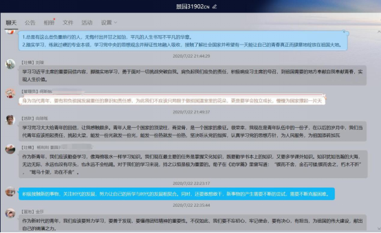 此次活动在公司切实加强宣传、组织和协调下,积极参与办出了实效。各班级召开线上座谈会,同学们进行激烈讨论,价值和思想得到进一步提升。总书记的回信让同学们更加明确了肩上的责任与使命,将不畏艰难险阻,走到基层去、一线去、艰苦的环境中去,为祖国和人民的真诚奉献,把个人理想融入党和国家发展中,做一名有理想、有本领、有担当的中国青年!