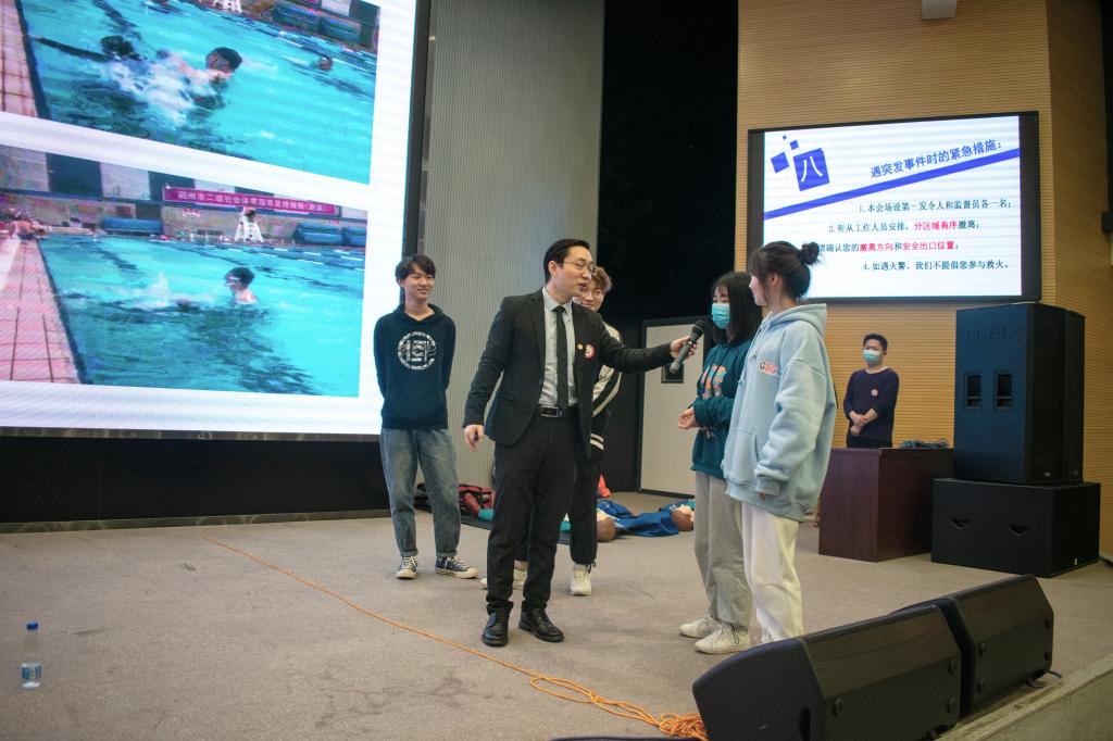 此次讲座主要围绕防溺水和运动安全两个内容展开,徐伟医师分别讲述了常见的安全隐患,正确的运动方式以及基本的施救方案。徐医师还通过现场问答的形式,增加了与同学们间的互动,使安全知识讲座充满趣味性。会场上同学们积极发言,主动上台配合进行“情景再现”,通过现场模拟教学进一步让同学们掌握正确的防范措施和施救方法。在讲座中徐伟医师多次强调“科学运动”、“见义智为”让同学们更清楚的了解了科学的运动时间和方式,明白了不能盲目施救,学会“智救”的重要性。让大家对防溺水和运动安全有了更深一步的认识。