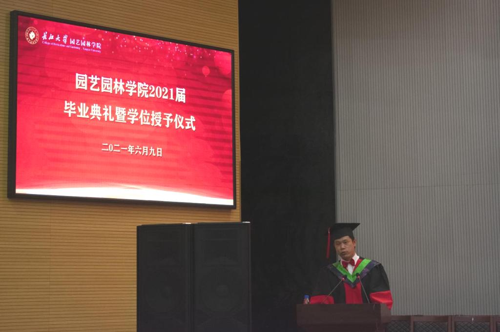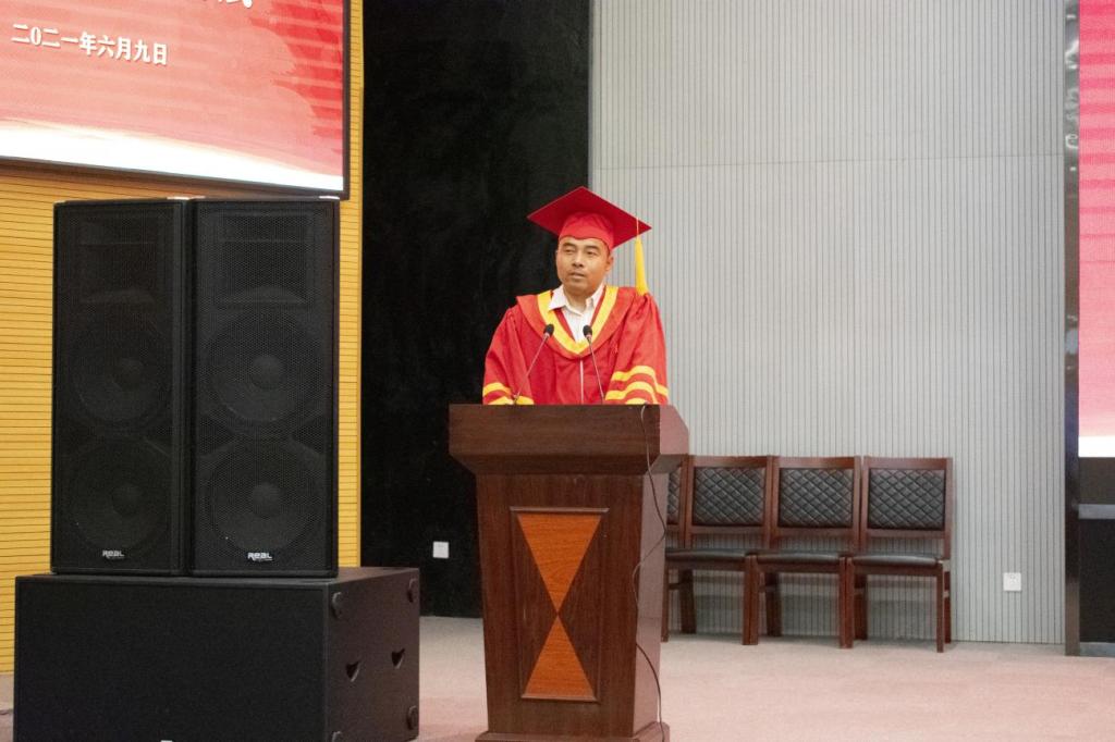 仪式第二项,教师代表叶家保发言。叶老师表示:“时光荏苒,这四年所有的相遇都是美好,所有的相遇都是宝藏,愿同学们历尽千帆,归来仍是少年!”