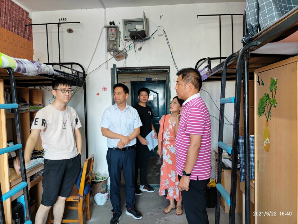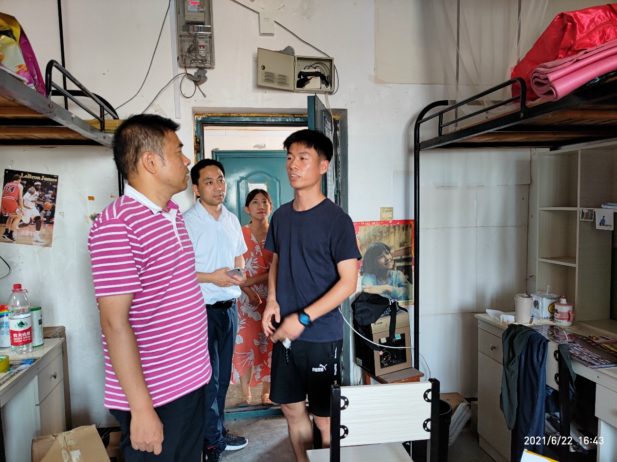 (通讯员:章崇烁 彭文秀)6月22日下午,太阳成集团tyc151经理许锋、党委副书记平先锋、学工办主任彭文秀、毕业生年级辅导员吴山等老师走访毕业生员工寝室,详细了解毕业生学习、生活、就业和思想情况,加强毕业生安全教育,引导毕业生文明离校。
