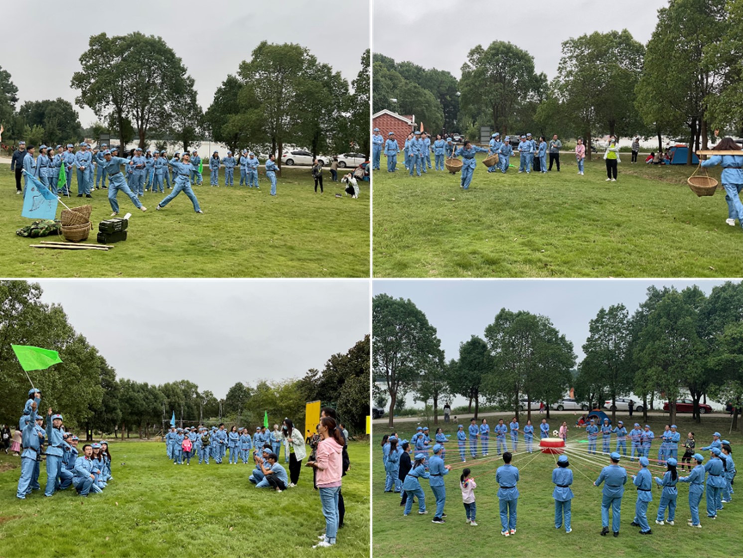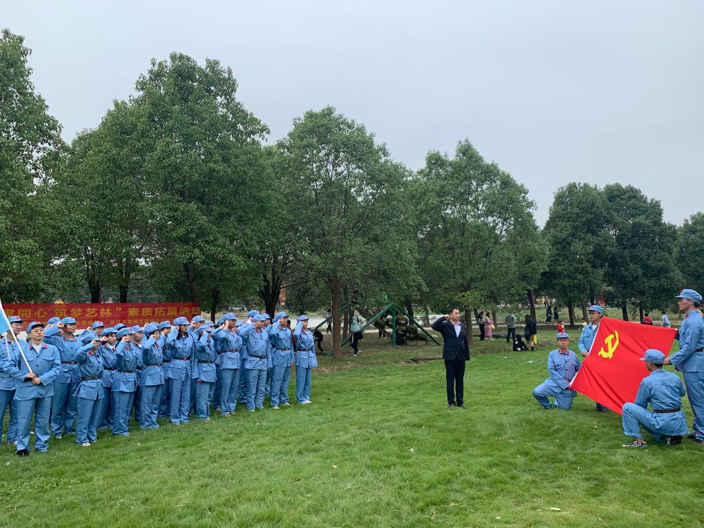 早上8:00,参与活动的师生于校门口集合,乘车前往荆州区紫荆拓展团建基地进行素质拓展活动。到场后整合队伍,由平先锋带领大家重温入党誓词,牢记初心使命。接下来由基地教官带领大家进行各种小活动,其中包括唱红歌、手榴弹演练、“朱德的扁担”接力活动等,锻炼员工意志的同时,也增加员工对中国共产党伟大精神的认识。下午16:00,活动圆满结束,大家集结队伍共同乘车返回太阳成集团tyc151西校区。