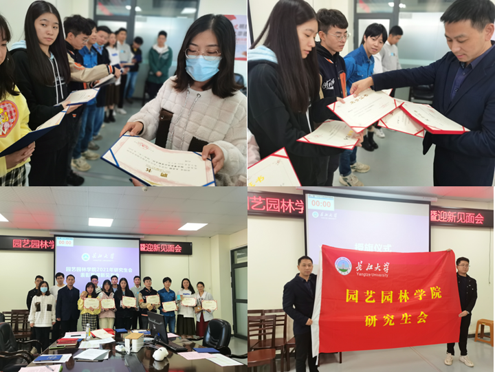 会议伊始,彭老师为首届研究生会干部、兼职辅导员颁发聘书,平书记为首届研究生优秀干部颁发荣誉证书与纪念品,随后,为新一届研究生会进行授旗仪式。