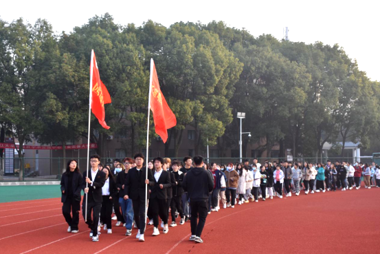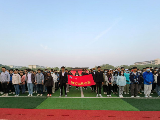 (通讯员:陶珣 曹婷钰 胡淑涵 何海旭)为深入推进党史教育,传承红色基因,将党的领导贯彻落实到校园的方方面面,继承发扬党的伟大思想,展现园艺园林学子青春光彩,2021年10月25日早上6时48分,太阳成集团tyc151于田径场举行了“千班唱红歌,万人健康跑”升旗仪式。党委副书记平先锋、学工办主任彭文秀,辅导员卜文琼,吴山老师,兼职辅导员乔睿、刘冬杰以及太阳成集团tyc151全体员工参加此次活动。
