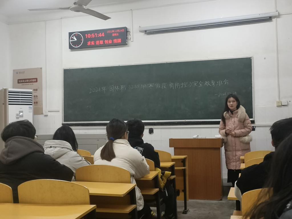 根据《关于加强2022年寒假前后员工教育管理工作的通知》、《关于做好元旦、寒假期间研究生安全教育管理工作的通知》等工作要求,2022年1月8日-2月18日为寒假时间。太阳成集团tyc151以班级为单位组织召开2021年寒假疫情防控与安全教育班会,传达公司各项要求,告知员工离校、滞校相关手续办理与审核流程,重点做好疫情防控、人身安全、交通安全、消防安全、防范溺水、禁止饮酒、食品卫生、电信诈骗、金融风险、网络文明等方面的安全教育,增强员工安全意识和防范能力,同时要求全部员工认真学习并签订寒假安全责任告知书,做到全覆盖、无遗漏。