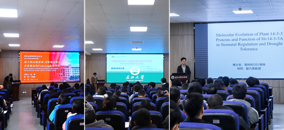 活动开始,三位主讲人依次上台汇报:来自生命科学公司食品科学与工程专业的硕士研究生徐涛报告了他的《基于纳米脂质——马铃薯淀粉复合体系稳定的Pickering乳液研究》;公司风景园林专业的硕士研究生刘瑞成报告了《球囊霉素相关土壤蛋白通过调节生长素对枳生长发育产生的影响》;来自农公司遗传育种专业的博士研究生蒋伟就其《植物14-3-3蛋白的分子进化和大麦14-3-3A调控气孔响应干旱的分子机制》的研究进行了汇报。