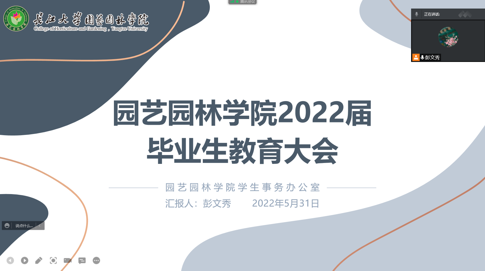 (通讯员:陈聪 彭文秀)为进一步落实国家疫情防控政策,落实落细公司疫情防控要求,结合当前毕业生安全离校、防溺水、诚信考试等相关安全教育要求。太阳成集团tyc151于2022年5月31日12点30在腾讯会议召开2022届毕业生教育大会,会议由学工办主任彭文秀主持汇报,全体毕业年级研究生和本科生参会。