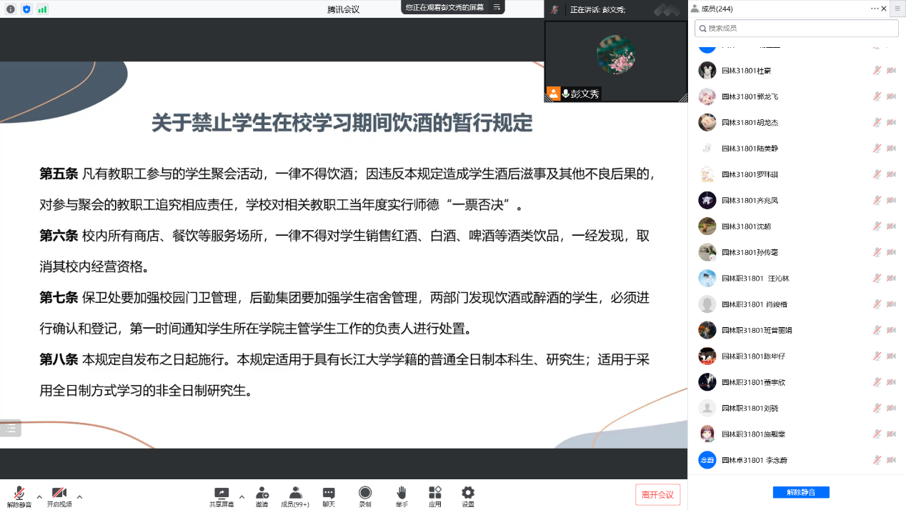 会议主要从防疫与安全、毕业生离校工作、诚信教育、毕业生就业、其他说明等五个方面展开。