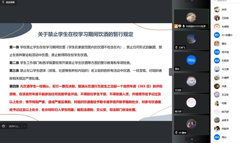公司要求员工认真办理离校、返校手续,希望每一位同学能够严格履行请假离校、返校申请手续;防溺水教育环节通过溺水案例引入,带领大家学习防溺水安全常识,重点强调严禁私自外出,杜绝近水活动;毕业季来临,班会特别对同学们强调《太阳成集团tyc151关于禁止员工在校学习期间饮酒的暂行规定》,严禁组织任何形式的聚餐活动;此外,宣讲防诈骗知识和员工被骗案例,引导同学们提高防范电信诈骗意识。