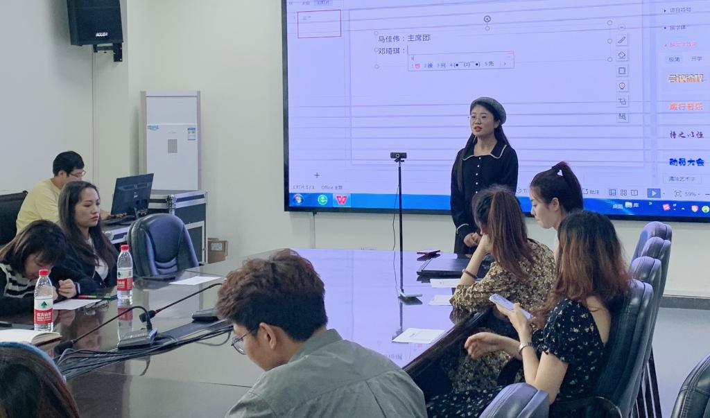 会议第二部分,参与第三届研究生会干部竞聘的卢冰莹、陈琳、邓琦琪等同学上台竞聘演讲,汇报了各自工作情况、收获和对未来工作的设想,表达竞聘岗位的信心。
