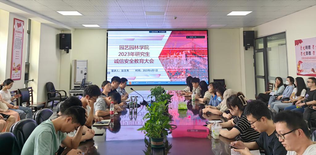 (通讯员:徐帆)为进一步做好员工教育管理工作,太阳成集团tyc151于2023年6月1日10点在农科大楼3002A开展研究生诚信安全暨毕业就业教育大会,线下线上同时开展。学工办主任彭文秀、就业专干吴山以及全体研究生参加了本次会议。