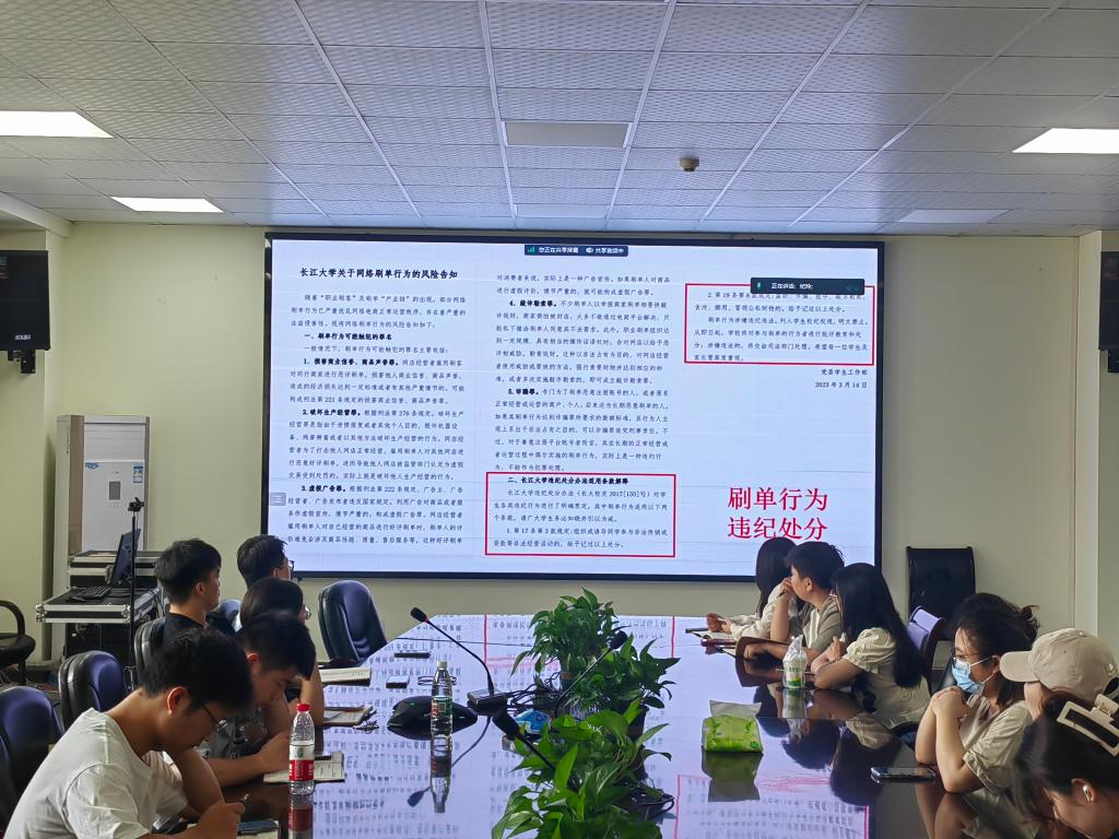 会议第二部分,为保障毕业生圆满安全离校,彭老师带领毕业年级研究生梳理离校流程,并详细介绍毕业生离校方案、安排提前离校、毕业生还款等工作。为提高研究生职业素养与求职择业能力,实现高质量就业,吴老师为2023届毕业生解答相关就业问题,鼓励大家积极主动择业、创业。
