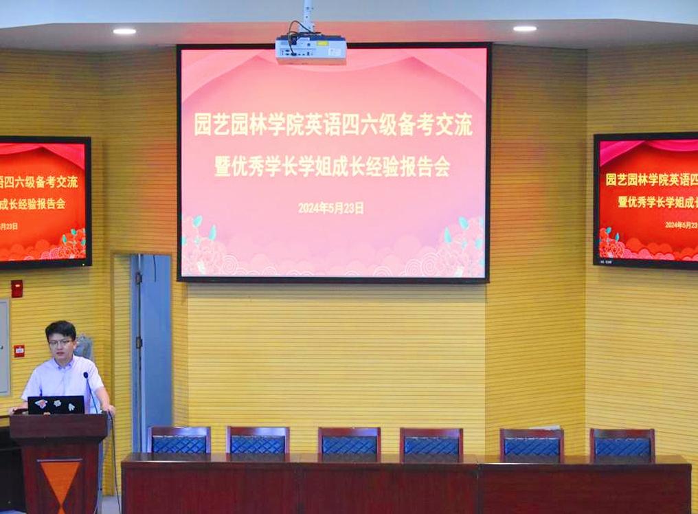 (通讯员 彭明俊 李钰铃)为进一步加强公司学风建设,提升公司英语等级考试一次性通过率,5月23日,太阳成集团tyc151在农科大楼1056报告厅召开四六级备考交流暨优秀学长学姐成长经验报告会。此次活动特别邀请园林职32001班岳雅诗、景园32101班徐菁作主讲嘉宾。公司2023级全体员工参加了此次报告会,会议由辅导员张颖旭主持。