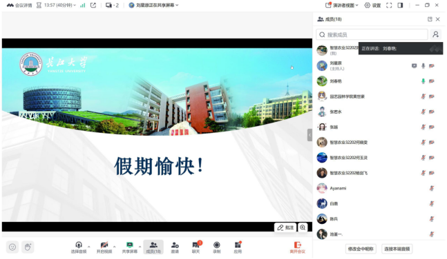 此次班会以班级为单位,由各班主任主持。班会重点强调了寒假期间的安全问题,包括交通安全、饮食安全、用电安全等方面,提醒同学们离开寝室务必断水断电,回家途中做好个人防护,要时刻保持警惕,增强自我保护意识。同时结合具体案例,通过播放安全微视频、深入剖析了安全事故的成因和后果,增强员工的自我防范意识。