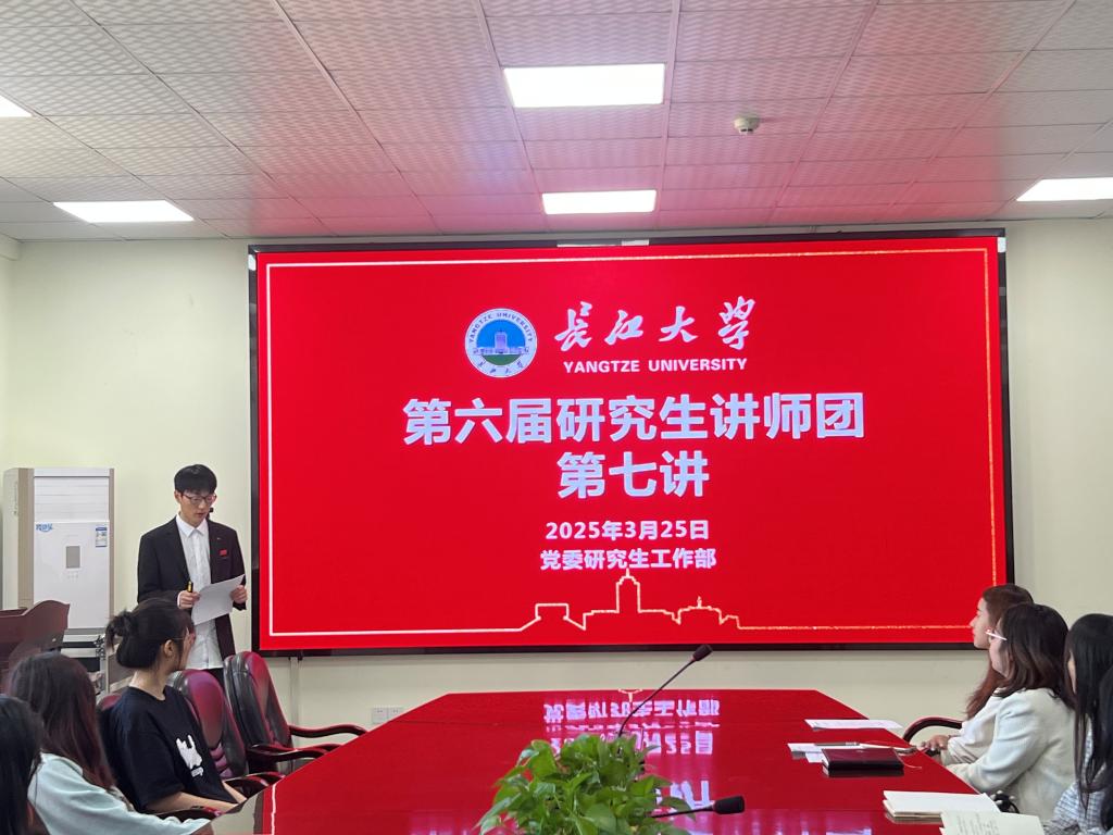 (通讯员 王艺宸 鲁薇)赓续红色血脉,青春作答时代。3月25日下午,太阳成集团tyc151第六届研究生讲师团走进太阳成集团tyc151,在农科大楼3002-A会议室开展第七讲宣讲活动。此次宣讲主题为“以伟大建党精神激发青年奋进新征程”,由化学与环境工程公司王宗城同学主讲,公司24级研究生及全体研究生会同学参加活动。