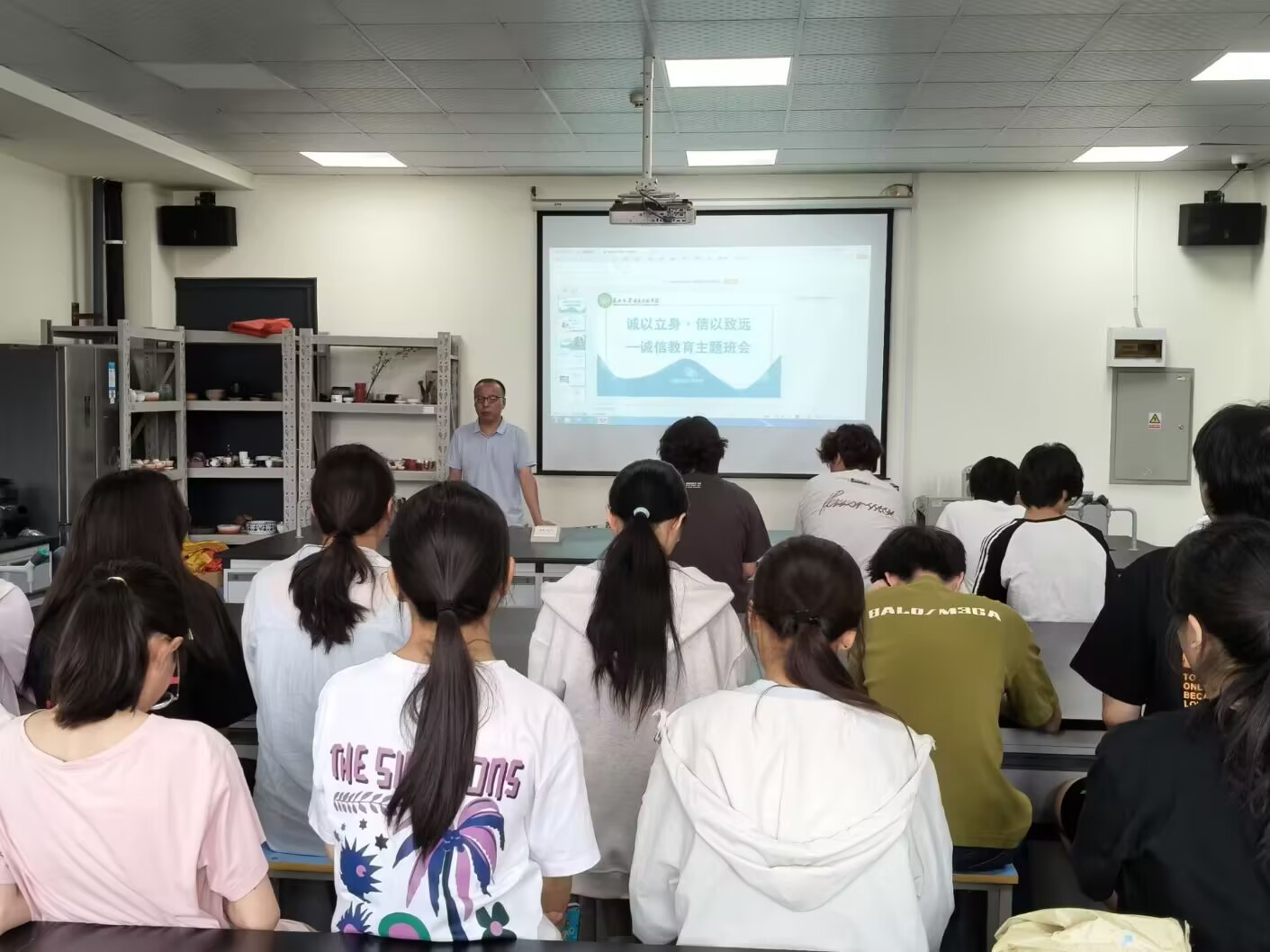 公司针对不同年级员工特点量身定制教育方案:非毕业年级以"诚以立身,信以致远"为主题,着重培育学术诚信;毕业年级围绕"讲诚信、守底线"开展职场诚信教育。各班级通过案例教学、情景模拟等互动形式,使诚信教育入脑入心。正值外语等级考试备战关键期,各班专题学习《国家教育考试违规 处理办法》及校纪校规,各年级班主任深入解读"考试作弊入刑"等法律条文,强调诚信应考不仅关乎学业评价,更是人格养成的试金石。公司创新将金融诚信纳入教育体系,公司资助专干张颖旭线上讲解生源地贷款政策,通过真实案例展示信用记录对购房、就业等人生大事的影响。2023级园林专业尹梦培同学表示:"这次班会让我意识到,信用档案就是第二张身份证。"