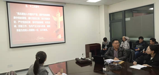 入党誓词是一名党员对党和人民作出的庄严承诺和保证,同时,也是全国近九千万党员共同的行为准则。学习活动中,袁龙义副经理为大家讲述了入党誓词变迁的5个阶段,每个阶段的入党誓词都能充分反映当时中国共产党肩负的历史使命。第一个阶段,即在建党初期,党其核心是“牺牲个人”“永不叛党”,党在创立和成长初期面临着严酷的革命斗争环境,入党誓词为捍卫党组织、保卫红色政权发挥了重要作用;第二阶段,抗日战争时期则强调“要做群众的模范”“对党有信心”,这一阶段的入党誓词不在强调“阶级斗争”,而是强调“要做群众的模范”;第三阶段到了解放战争时期,在此时中央对入党誓词没有统一的规定,是否举行入党宣誓仪式由地方党组织自行决定,但是入党誓词是表现出我们党对于实现新民主主义革命胜利的坚定自信,更强调党的群众路线和实事求是的思想路线,更加强调要坚决执行党的决议;第四阶段的入党誓词可自拟,这成为这一时期的一个主要特色;最后一个阶段即党的十二大至今,在深刻回顾总结党的历史经验教训的基础上,1982年9月6日,党的十二大通过了新的《中国共产党章程》,并正式载入了入党誓词。习近平总书记深刻指出,不论担任何种职务、从事何种工作,首先要明白自己是一名在党旗下宣过誓的共产党员,要用入党誓词约束自己。