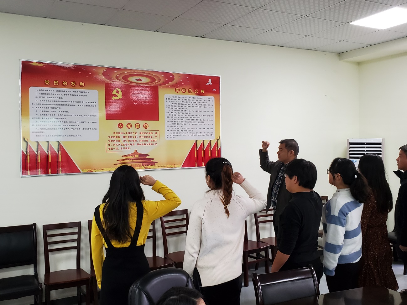 最后,员工党员在导师许锋教授的带领下重温了入党誓词,他们高举右手、握紧拳头,庄严宣誓。相信每一位宣誓人的脑海里都闪现了当年第一次站在党旗下宣誓的场景,那是党员向组织一生的承诺与担当—不忘初心、牢记使命!