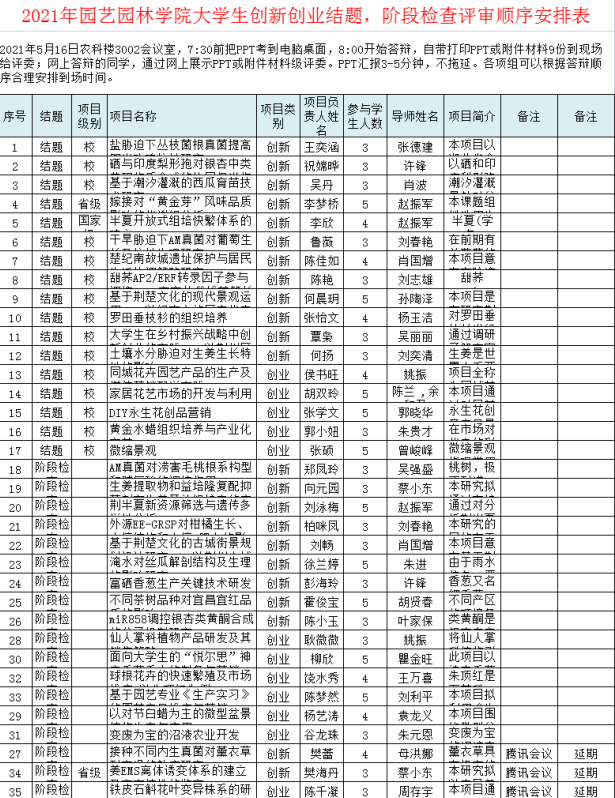2021年太阳成集团tyc151老员工创新创业结题,阶段检查评审顺序安排表