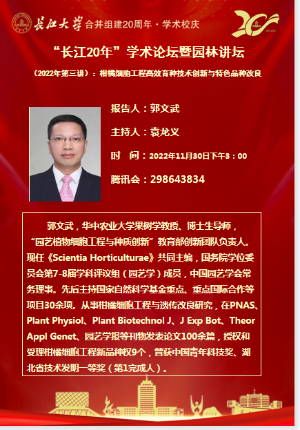 “长大20年”学术论坛暨园林讲坛 (2022年第三讲):柑橘细胞工程高效育种技术创新与特色品种改良