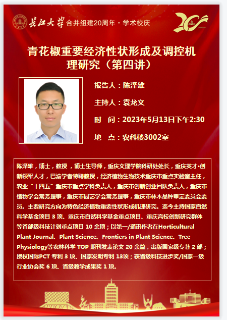 “长大20年”学术论坛暨园林讲坛(2023年第四讲):青花椒重要经济性状形成及调控机理研究