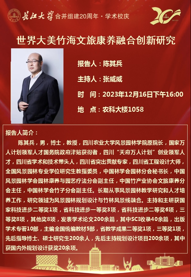“长大20年”学术论坛暨园林讲坛(2023年第九讲):世界大美竹海文旅康养融合创新研究