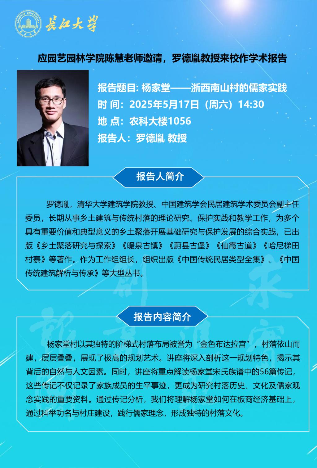 园林讲坛(2025年第六讲):杨家堂——浙西南山村的儒家实践
