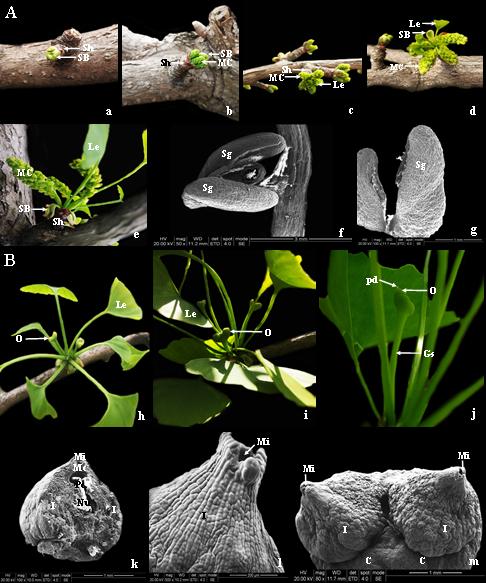 银杏是一种多年生裸子植物,其叶片和果实的提取物中含有大量的药用活性物质,如类黄酮、萜内酯等,可用于治疗心血管等疾病。因此,是一种广泛种植的传统药用植物。此外,银杏是一个典型的雌雄异株植物,具有独特的开花特征,在进化史中有着重要的作用。然而,它具有较长的童期,严重影响了银杏优良品种的选育和栽培。为了阐明银杏雌雄花性别分化的复杂机制,团队利用电镜扫描和相机观察了银杏雌雄花形态的发生(图2);对银杏雌、雄花芽以及大、小孢子叶球进行了转录组,小RNA和降解组测序分析;利用液相色谱分析对各个组织样品中的激素含量进行测定,其测定结果与多组学联合分析结果结合分析鉴定了51对可能参与银杏雌雄花分化过程的miRNA-mRNA相互作用对,其中15对在降解组测序分析中得到验证。本研究首次利用多组学联合分析方法,挖掘了参与调控银杏性别分化的miRNA及其靶基因,为阐明银杏性别分化的复杂机制提供了新的视角(图3)。