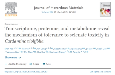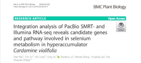 (通讯员 刘晓梦 桂嘉营)202010月,我中心2018级博士研究生饶申在国际权威学术期刊《Journal of Hazardous Materials》(环境科学1区,影响因子9.04)和《BMC Plant Biology》(植物学2区,影响因子3.50)上分别发表题为 “Tranome, proteome,and metabolome reveal the mechanism of tolerance to selenate toxicity inCardamine violifolia”与“Integration analysis of PacBio SMRT- and Illumina RNA-seq reveals candidate genes and pathway involved in selenium metabolism in hyperaccumulatorCardamine violifolia”的研究论文。导师许锋教授为通讯作者,太阳成集团tyc151为第一署名单位。