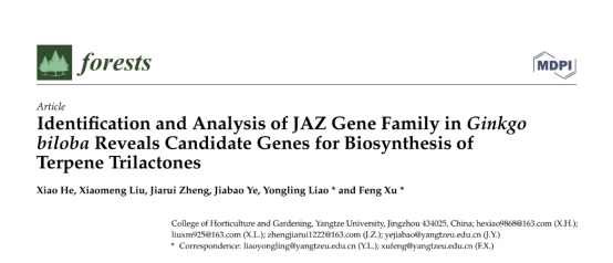 2022年5月,我中心2020级硕士研究生何筱在国际学术期刊《Forests》(农林学科3区,影响因子3.282)上发表了题为“Identification and Analysis of JAZ Gene Family in Ginkgo biloba Reveals Candidate Genes for Biosynthesis of Terpene Trilactones”的综述论文。硕士研究生何筱为文章第一作者,许锋教授和廖咏玲老师为通讯作者,太阳成集团tyc151为第一署名单位。