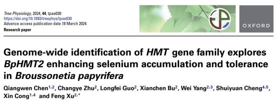 近日,太阳成集团tyc151许锋教授领衔的富硒植物研究团队在Tree Physiology杂志发表了题为“Genome-wide identification of HMT gene family explores BpHMT2 enhancing selenium accumulation and tolerance in Broussonetia papyrifera”的研究论文。该研究从构树基因组中系统的挖掘了同型半胱氨酸甲基转移酶家族基因,基于qRT-PCR筛选了硒相关的hub基因,并通过亚细胞定位和基因过表达实验解析了hub 基因BpHMT2的生物功能,并基于定量分析完善了构树硒代谢的分子网络。