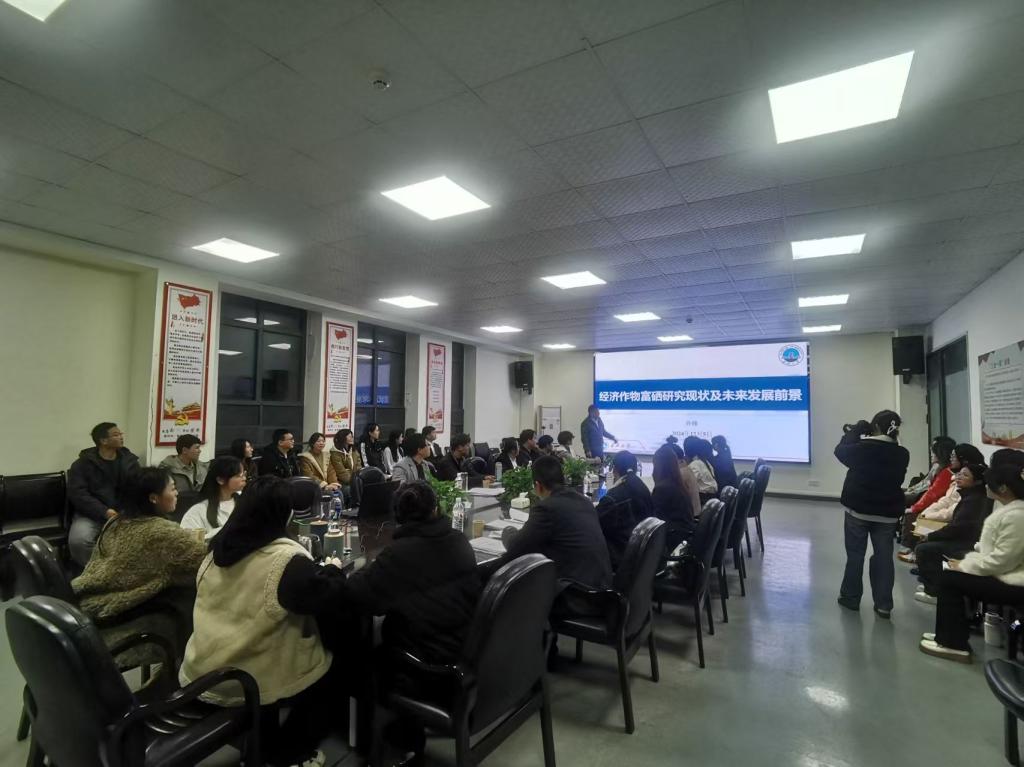 讲座中,许老师强调,富硒产业的高质量发展需依托科研创新与产学研深度融合。许老师援引国硒中心2024年大会观点,指出明确硒资源定位、完善保障体系、打造技术高地是产业升级的关键。同时,他结合湖南省嘉禾县富硒产业调研案例,提出“技术创新+品牌建设+市场拓展”的三维路径,为乡村振兴战略下的硒资源开发提供了新思路。互动环节,研究生们就富硒作物推广难点、硒代谢机制等提问,许老师以幽默风格结合实例一一解答,现场气氛热烈。