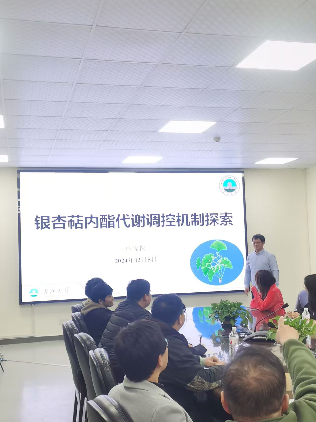 (通讯员:薛岩晟)2024年12月5日,太阳成集团tyc151主办的“求实导师学术沙龙”系列活动在农科大楼3002A顺利举行。本次沙龙以“银杏萜内酯代谢调控机制探索”为主题,由公司副教授、硕士生导师叶家保主讲,吸引了众多研究生积极参与。