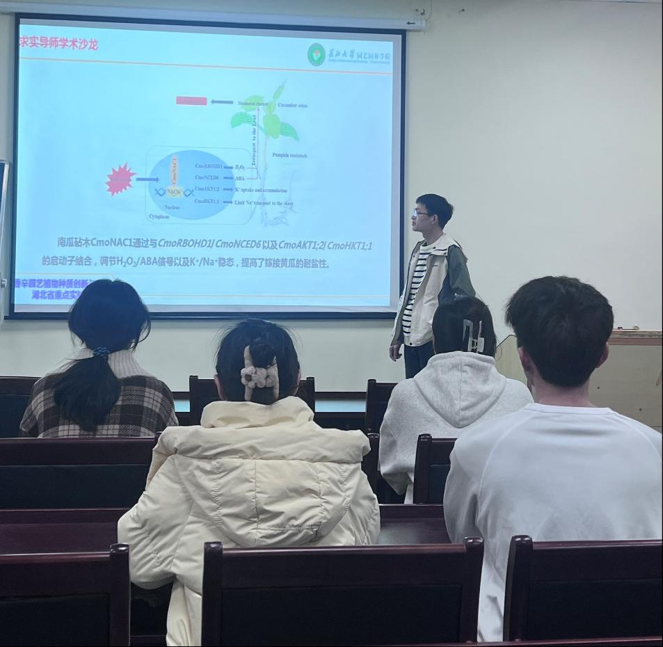 彭玉全副教授的讲座内容详实,讲解清晰。他用实验数据展示了南瓜砧木对黄瓜耐盐性的提高作用。现场师生认真聆听并记录要点。